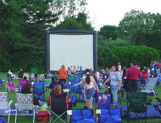 Two hours before showtime, we set up our large inflatable screen, sound and projection systems. Music plays while the audience assembles and waits, with relaxed anticipation, for showtime to start at civil twilight. Movies in the Parks can create an outdoor cinema virtually anywhere...we even bring our own electricity! |